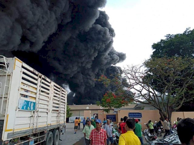 เจ้าหน้าที่ดับเพลิงต้องเร่งระดมช่วยกันฉีดน้ำอย่างต่อเนื่อง แต่เนื่องจากต้นเพลิงเป็นกองพลาสติกจำนวนมากและภายในโกดังยังมีเครื่องจักรในการผลิตเม็ดพลาสติก ซึ่งเป็นเชื้อเพลิงอย่างดีบวกกับมีลมพัดแรง ทำให้เพลิงโหมลุกไหม้อย่างรวดเร็ว ทั้งนี้ ในที่เกิดเหตุได้มีนายดงพล รุจิธรรมธัช นายอำเภอเกาะจันทร์ พร้อมด้วย พลตรี ชาติชาย น้าวแสง ผู้บัญชาการกองบัญชาการช่วยรบที่ 1 เดินทางเข้าควบคุมการดับเพลิงในครั้งนี้